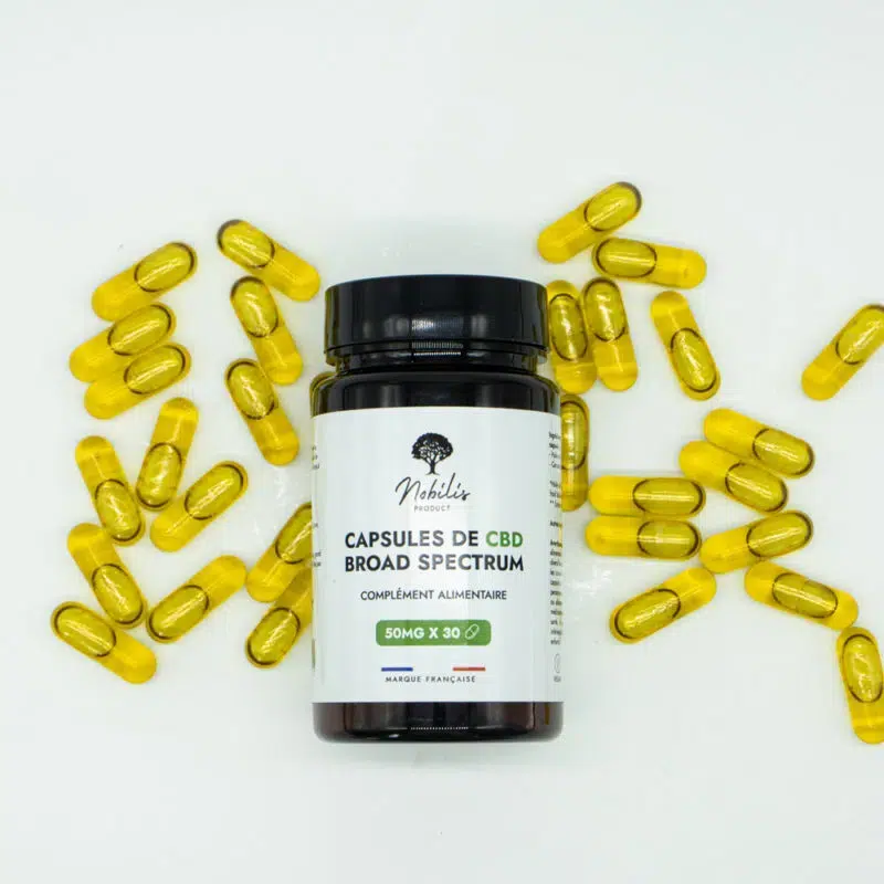En Cápsulas de CBD de Nobilis Product están diseñadas para aportarle un bienestar general, de forma natural y sin compromiso. Cada una de las 30 cápsulas contiene 50 mg de CBD amplio espectro (Amplio espectro), procedente de cáñamo ecológico cultivado en Francia. Formulado para estar completamente libre de THC, Son ideales para las personas que quieren tolerancia cero.